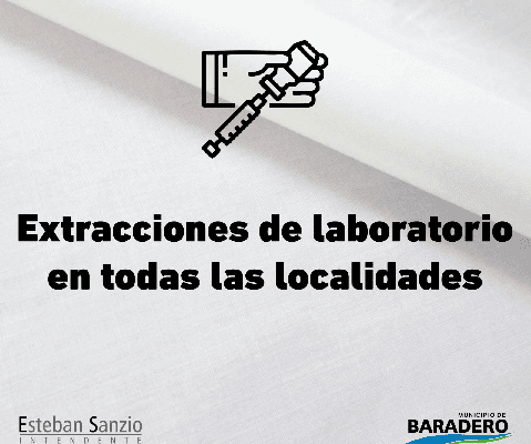 El Municipio de Baradero informa que a partir del jueves 4 de mayo se comenzarán a realizar extracciones de laboratorio los primeros y terceros jueves de cada mes en el Centro de Atención Primaria de la Salud de Ireneo Portela; y el segundo y cuarto jueves del mes en el CAPS de Santa Coloma. El cronograma comenzará el 4 de mayo en Ireneo Portela y el 11 de mayo continuará en Santa Coloma (en caso de feriado, consultar en el centro correspondiente).