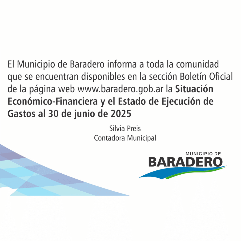 La Municipalidad de Baradero difundió los informes correspondientes a la Situación Económico-Financiera y al Estado de Ejecución de Gastos por Finalidad y Función, actualizados al 30 de junio de 2025.