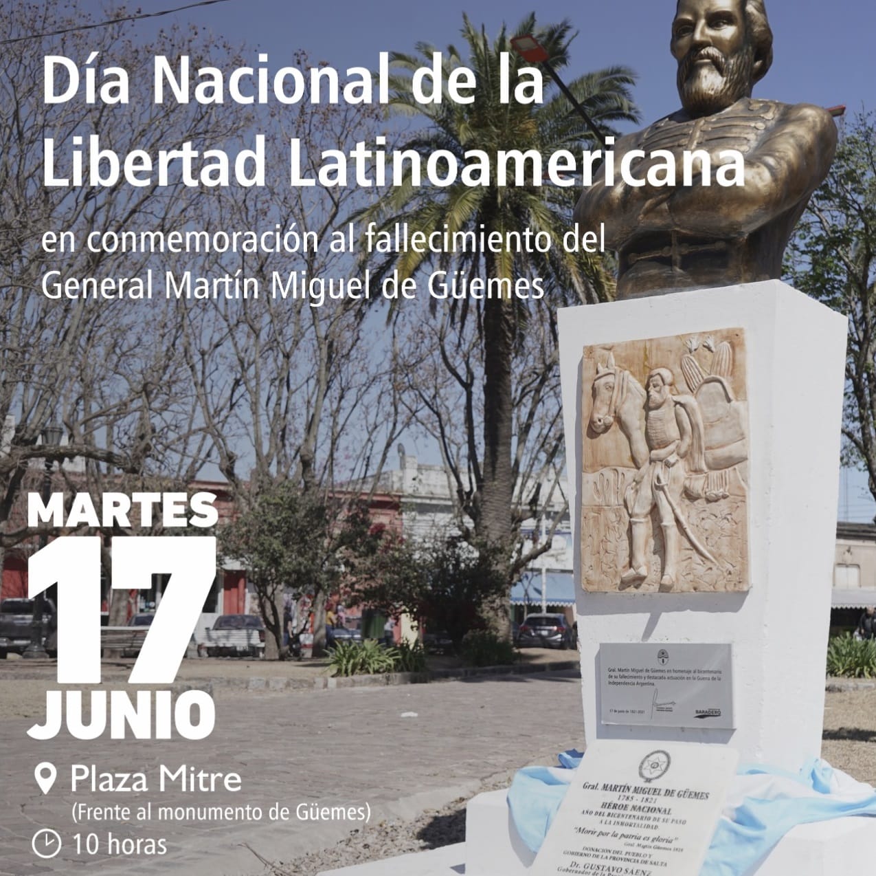 La ceremonia se realizará el martes 17 de junio, a partir de las 10 horas, en Plaza Mitre, junto al Monumento Homenaje al General Martín Miguel de Güemes.