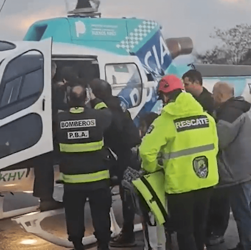 ASÍ EVACUÓ UN HELICÓPTERO A LOS CHICOS VARADOS EN LA RUTA 9 EN MEDIO DE LAS INUNDACIONES.