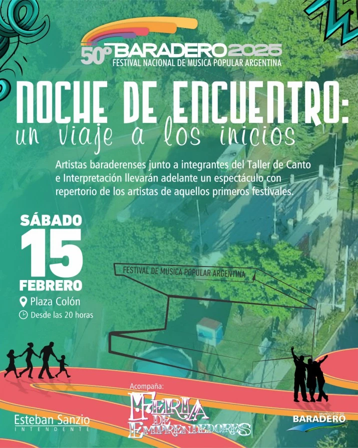 El próximo sábado 15 de febrero, la Plaza Colón de Baradero será el escenario de “Noche de Encuentro: un viaje a los inicios”, un evento especial que rendirá homenaje a los primeros artistas que dieron vida al Festival Nacional de Música Popular Argentina.