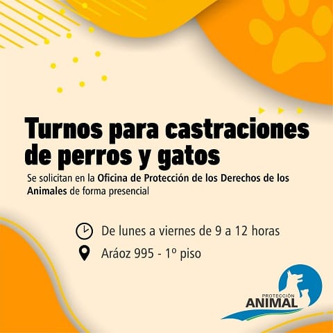 Las castraciones gratuitas son destinadas a perros o gatos mayores de 7 meses. Al momento de solicitar el turno, la persona deberá especificar su nombre, apellido, número de teléfono, y si la mascota a castrar es perro, gato, macho u hembra.