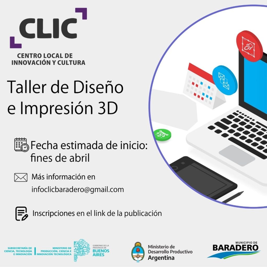 El Municipio de Baradero mediante la Secretaría de Modernización y Gestión Pública informa que están abiertos los talleres gratuitos del Centro Local de Innovación y Cultura de producción audiovisual y diseño 3D. Los talleres iniciarán en abril.