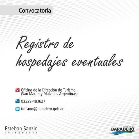 El Municipio de Baradero a través de la Dirección de Turismo, informa que abrió la convocatoria para inscribirse en el Registro de Hospedajes Eventuales (Ordenanza 3858/2008).
