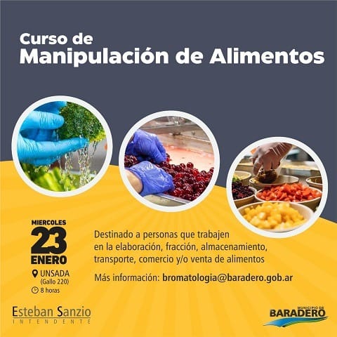 El Municipio de Baradero informa que se llevará adelante el Curso de Manipulación de Alimentos en el Centro Universitario (Thames y Gallo).