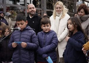 Luego de la jura de lealtad a la Bandera tomada por el intendente y la inspectora jefa distrital, estudiantes de la Escuela Primaria N°5 recitaron un poema llamado “A mi Bandera” en honor a su creador Manuel Belgrano, se trata de los estudiantes Thiago Moreira, Lucio Calzone, Giaconda Catillo y Juana Méndez Encina.