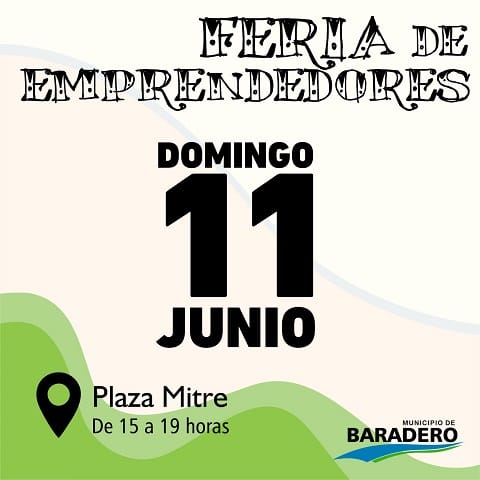 Una nueva edición de la Feria de Emprendedores se realizará el domingo 11 de junio en la Plaza Mitre de Baradero. Será desde las 15 hasta las 19 horas, donde artesanas, artesanos y emprendedores exhibirán y comercializarán productos variados de elaboración única y piezas artesanales de calidad.
