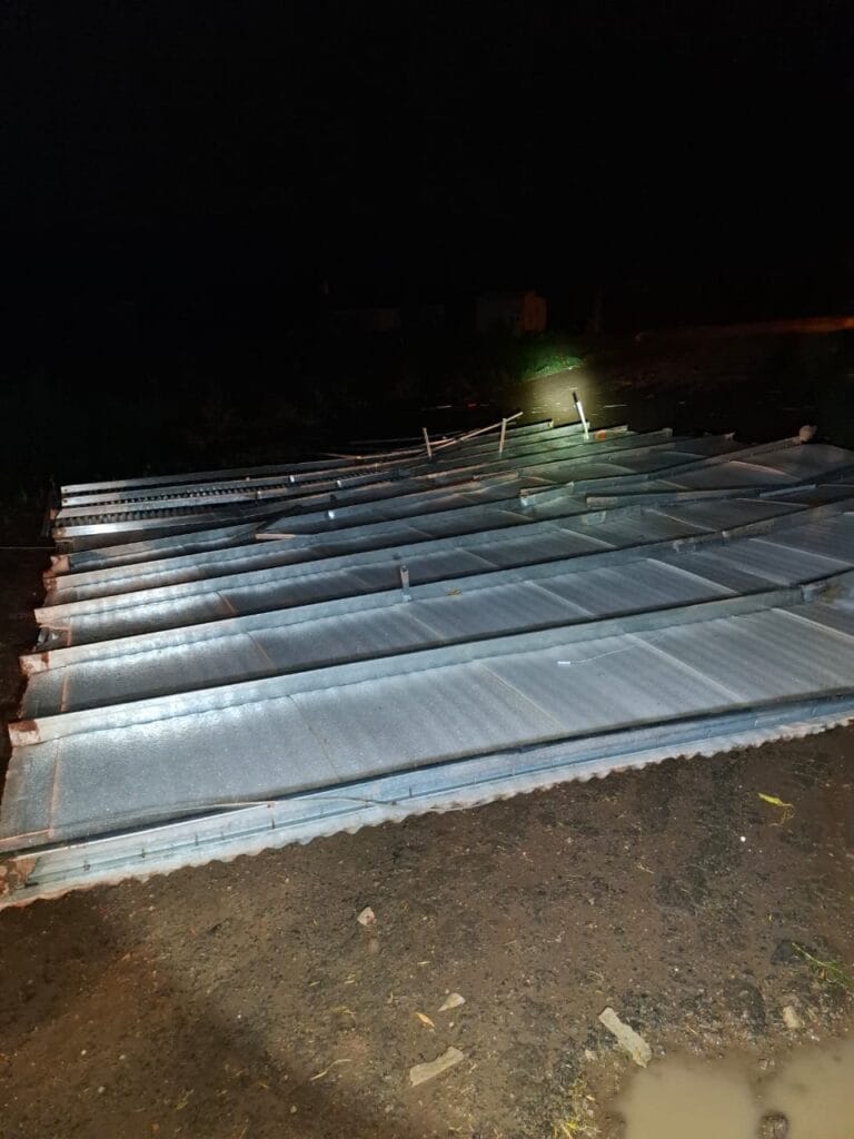 Las zonas más comprometidas fueron al sur del área urbana, especialmente los barrios Sur y El Resero, donde el viento voló el techo de un galpón. También se reportaron postes caídos, cables cortados y árboles derribados.