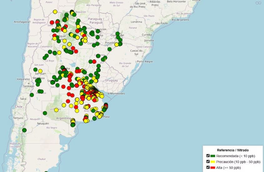 El arsénico, un metaloide que está naturalmente en el suelo argentino, contamina las napas y llega al agua que toman millones de personas. No se ve, no tiene olor ni sabor y, a largo plazo, puede generar lesiones en la piel, enfermedades cardíacas y varios tipos de cáncer. Mientras la OMS recomienda un límite de 10 ppb, Argentina todavía permite hasta 50 ppb. En muchas ciudades los valores superan lo seguro. La exposición es silenciosa, pero sus consecuencias no.