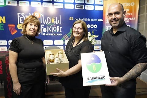 Agradecieron a la comisión directiva con un presente que recibió la vicepresidenta Clara Elizabeth Gramajo. El mismo contenía elaboraciones de productores baraderenses para también dar promoción a la feria que acompañará en la Plaza Mitre durante los eventos de febrero.