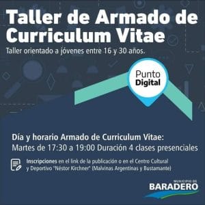 ✓ Taller de diseño y armado de Curriculum Vitae, orientado a jóvenes entre 16 y 30 años 👇🏼