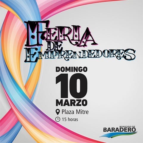 Una nueva edición de la Feria de Emprendedores se realizará el domingo 10 de marzo en la Plaza Mitre de Baradero a partir de las 15 donde artesanas, artesanos y emprendedores exhibirán y comercializarán productos variados de elaboración única y piezas artesanales de calidad.