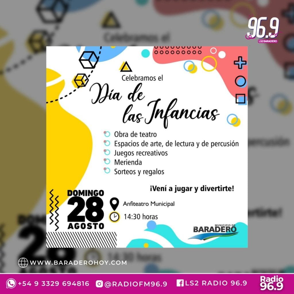Este domingo 28 de agosto desde las 14:30 horas en el predio del Anfiteatro Municipal, se llevará adelante la celebración del Día de las Infancias con distintas propuestas para disfrutar con amistades y en familia.