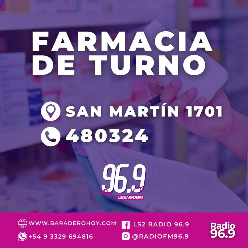 26 de enero de 2022FARMACIA DE TURNO MIERCOLES 26 DE ENERO 2022Buenos día gente les dejamos el servicio para este Miércoles 26 de EneroFarmacia de turnoSan Martin 1701480324#farmacia #Baradero #radio #informacion #argentina