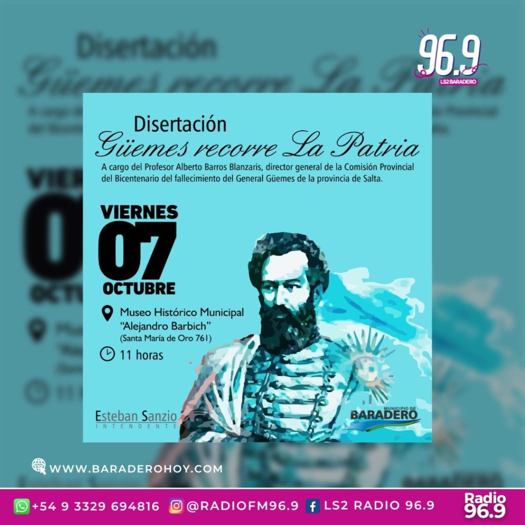 Asimismo, a las 11 horas, se llevará adelante la disertación de “Güemes recorre la Patria” en el Museo Histórico “Alejandro Barbich” (Santa María de Oro 761) a cargo del profesor Alberto Barros Blanzaris, director general de la Comisión Provincial del Bicentenario del fallecimiento del General Martín Miguel de Güemes de la provincia de Salta.