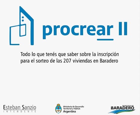 Se trata de las 207 viviendas correspondientes al proyecto urbanístico Procrear Parque del Este que están prontas a su finalización. Cabe recordar que la inscripción para participar del sorteo abre el próximo 18 de julio a partir de las 15 horas ingresando al siguiente link: https://www.argentina.gob.ar/habitat/procrear/desarrollosurbanisticos y está destinada únicamente para personas de Baradero y sus localidades.