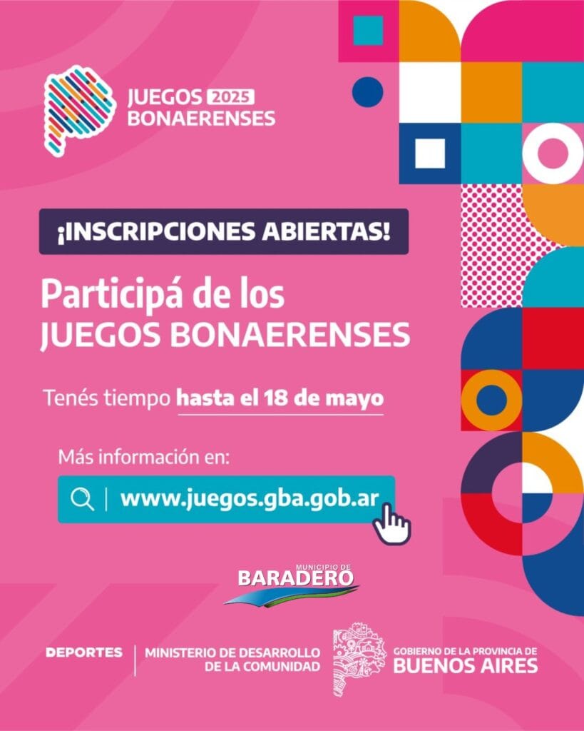 La Dirección de Deportes de la Secretaría de Cultura, Educación, Comunicación y Deporte del Municipio de Baradero informa que ya están abiertas las inscripciones para los Juegos Bonaerenses 2025, tanto en el área de Deportes como en Cultura.