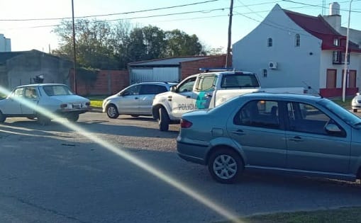 Fecha 28/06/23: Siendo las 16:40 horas Personal Policial acude a calle Juan XXIII y Godoy Cruz donde colisiona automóvil marca Fiat modelo Siena color gris, conducido por *masculino mayor (41)*, con automóvil marca Renault 12 color blanco conducido *masculino mayor (32)* acompañado por femenina *femenina mayor (30)*, resultando último conductor trasladado a hospital local con lesiones leves en rostro. Resto ileso. Policía Científica al lugar.