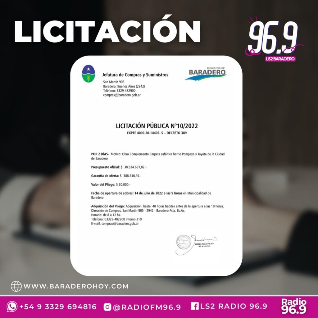 17 de junio de 2022LICITACION PUBLICA N° 10, 11, 12 /2022 Navegación de entradasINFORME POLICIAL VIERNES 17 DE JUNIO 2022 DIEGO SANTILLI MANO A MANO CON LOS VECINOS DE BARADERO Y ¿FERNANDA SE POSTULA PARA LA INTENDENCIA 2023?