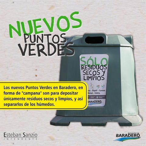 El Municipio de Baradero a través de la Dirección de Ambiente perteneciente a la Subsecretaría de Desarrollo Económico Sustentable informa que desde este miércoles 16 de agosto los residuos secos y limpios deberán depositarse en los nuevos contenedores campanas que se colocarán en distintos puntos de la ciudad.