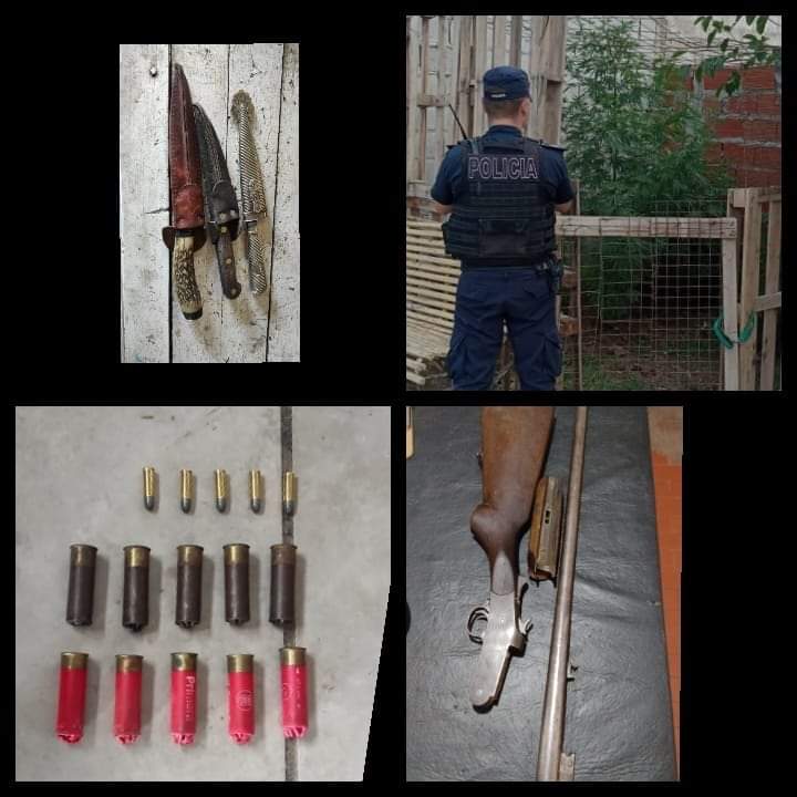 Del lugar se secuestraron 3 cuchillos, que uno fue reconocido por la damnificada, una escopeta calibre 16 con 11 cartuchos intactos, 05 cartuchos intactos calibre 23, 02 plantas de marihuana de 1, 70 de altura y un sujeto de 30 años fue notificado por la causa de encubrimiento.