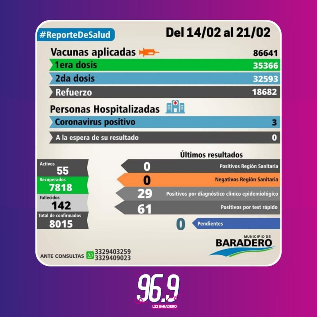 👥 Hasta el momento 8015 personas de nuestra ciudad han dado coronavirus positivo. De estas 8015 personas, 55 están transitando la enfermedad en este momento.