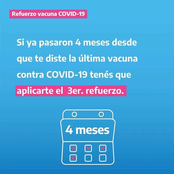 En todos los Centros de Salud estamos aplicando el tercer refuerzo para personas mayores a 18 años que hayan recibido su segundo refuerzo hace cuatro meses.
