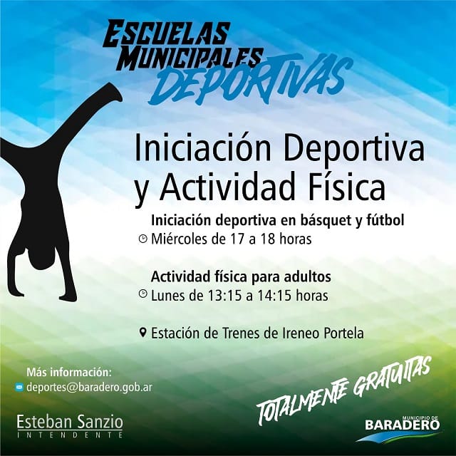 El Municipio de Baradero a través de la Dirección de Deportes de la Secretaría de Cultura, Turismo, Educación y Deporte informa que se creó una nueva Escuela Municipal de Iniciación Deportiva y de Actividad Física que se dictará en Ireneo Portela.