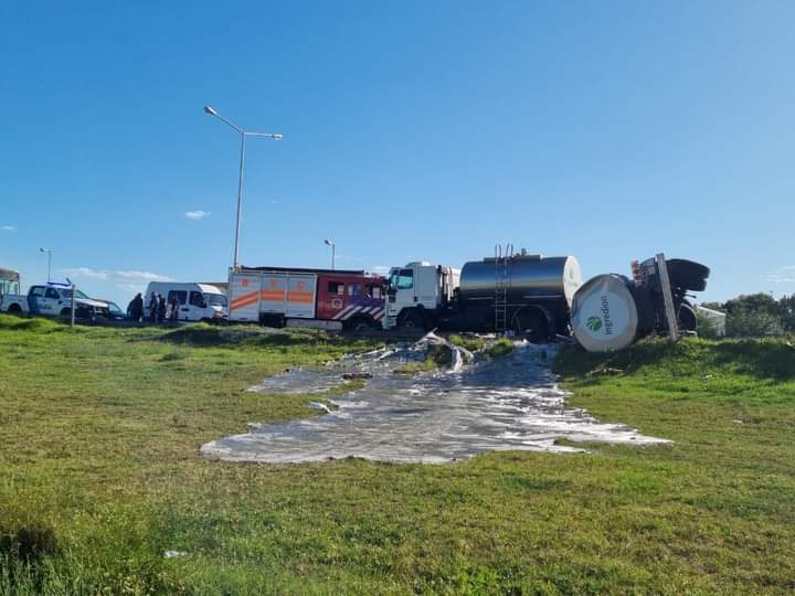 UN CAMIÓN DE UNA EMPRESA DE BARADERO VOLCÓ SU CARGA EN RUTA 9